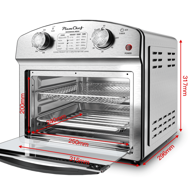 SKU: W1002P29236112.5 Quart 7-in-1 Convection Toaster Oven, 1500W, Stainless Steel, with 5 Pre-Set Menus – Roast, Bake, Slope, Grill, Broil, Toast, Dehydrate & Defrost,11.8L smart oil-free air oven with separate oil filter, 360° air circulation, timer and non-stick pan, low-fat cooking, mechanical knob, non-stick basket, heat-resistant handle, multi-hole cooling
