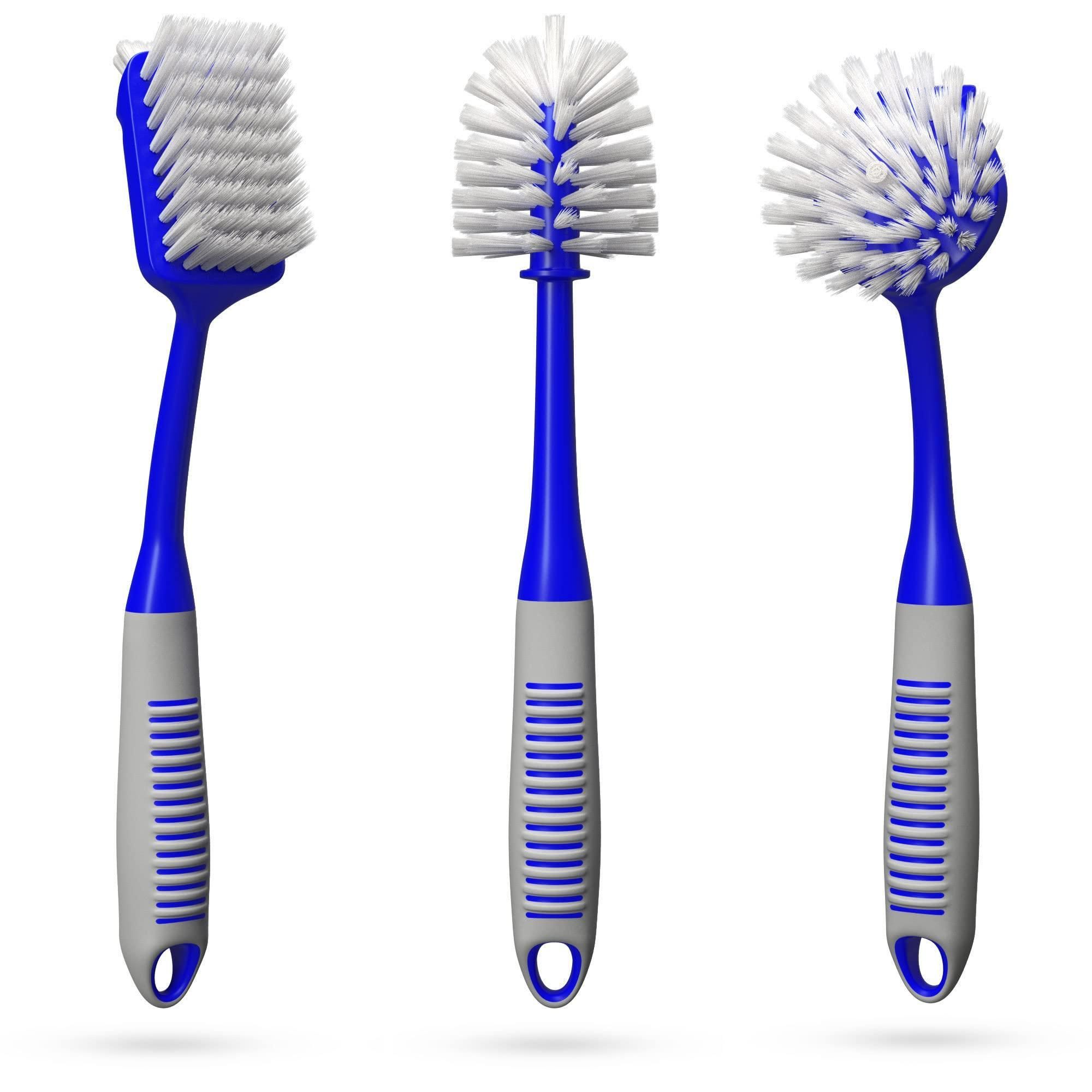 Home > Blue Dish Brush Set of 3 with Bottle Water Brush Scrub Brush and Scrubber Brush for Kitchen Ergonomic Non Slip Long Handle