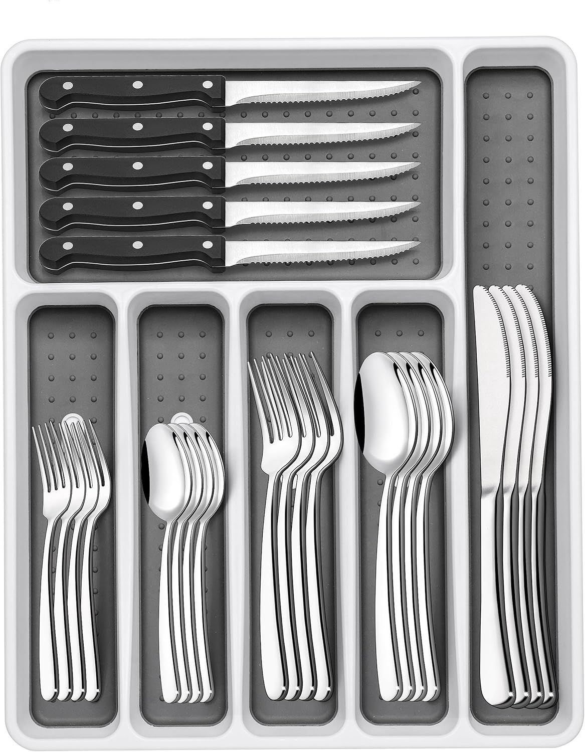 Home > 49-Piece Silverware Set with Organizer, Heavy Duty Stainless Steel Flatware for 8,