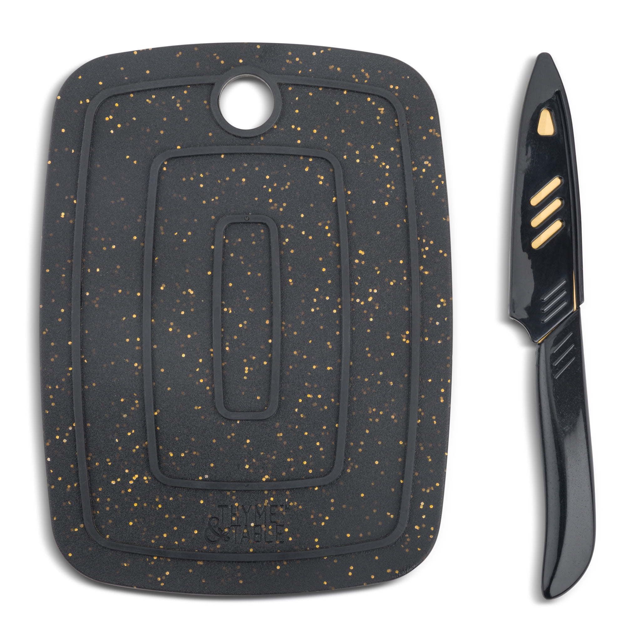 Thyme & Table Bar Board with Knife, 2-Piece Set is the ultimate duo for your kitchen. Designed with functionality and durability in mind, this set will make prepping ingredients a breeze. The Bar Board is crafted from high-quality materials making it both lightweight and strong. The board features a smooth surface that's easy to clean and won't dull your knives. Its compact size makes it perfect for small kitchens, keeping your workspace clean and tidy. The Cutting Knife is a multi-purpose tool that's perfect for slicing and dicing everything from vegetables to meat. Made from premium stainless steel, the blade is sharp and durable, allowing you to make precise cuts every time. The ergonomic handle provides a comfortable grip and excellent control, making it easy to use for both beginners and professionals alike. Whether you're preparing a gourmet meal or a quick snack, the Bar Board and Cutting Knife set is a must-have in any kitchen. With its sleek design and exceptional functionality, it's sure to become your go-to tool for all your culinary needs. Upgrade your kitchen game today with this top-quality set! For care & ensuring the product's longevity, please hand wash in warm water with a soft sponge and dish soap.