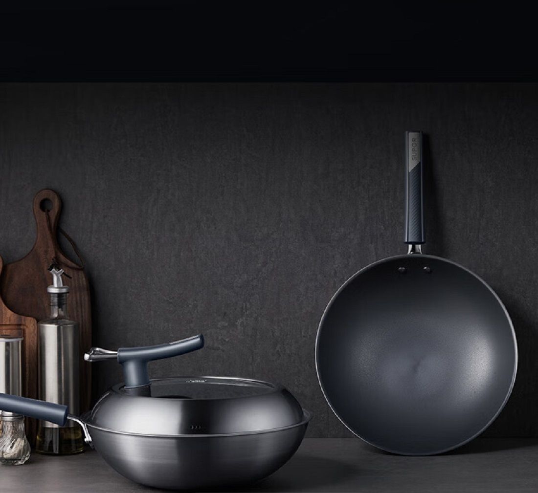 1.1.Double anti-sticking, cooking, the surface of the titanium material, its own anti-adhesion, microscopic concave and convex structure, to achieve the physical anti-sticking.